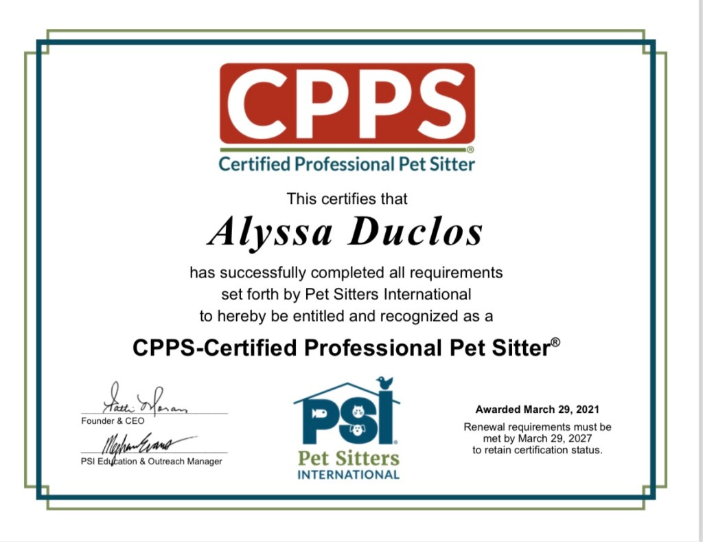 “If you’re looking for a person who will treat your dog like their own, you’ve found it! Alyssa walked and cared for my senior dog for years. She was always trustworthy, responsible, and kindly dealt with my dog’s special needs. It has been a pleasure interacting with the entire Alyssa’s Critter Sitters Team.”